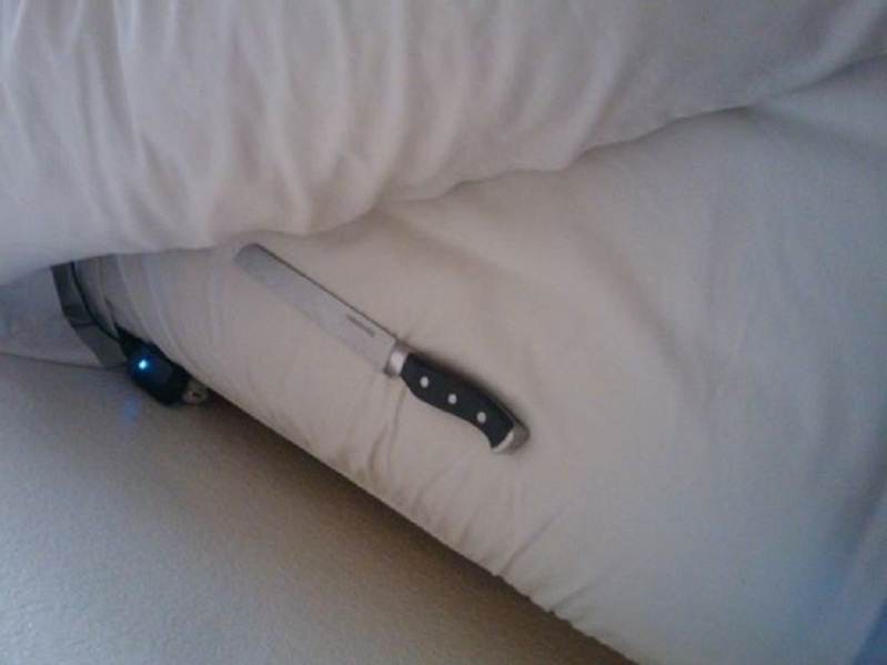 Đây là một đại kỵ khi đi ngủ, vì sát khí có thể ảnh hưởng đến tinh thần, khiến bạn ngủ không sâu, hay giật mình hoặc gặp ác mộng.