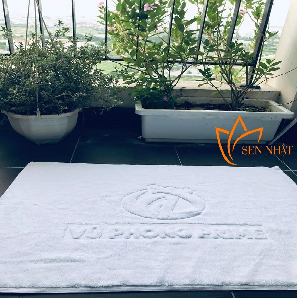 Khăn lau chân sẽ được đặt trong phòng tắm, có kích thước 60cm x 80cm, tương tự như thảm lau chân ở nhà. Khăn lau chân sẽ có chất liệu dày và thô cứng hơn những loại khăn còn lại. Với những khách sạn cao cấp, thường sẽ có 2 chiếc khăn lau chân cho khách hàng, một ở thành bồn tắm và một ở thanh ngang cửa kính phòng tắm vòi sen. Còn những khách sạn 3 sao trở xuống thường chỉ có 1 khăn đặt ở ngay khu vực phòng tắm.