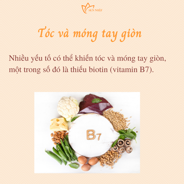 Biotin còn được gọi là vitamin B7, giúp cơ thể chuyển đổi thức ăn thành năng lượng. Sự thiếu hụt biotin là rất hiếm. Nhưng khi nó xảy ra, tóc và móng tay giòn, mỏng hoặc chẻ ngọn là một số triệu chứng đáng chú ý nhất.