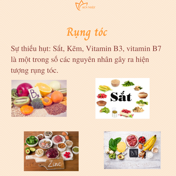 Biotin (vitamin B7): Biotin là một loại vitamin B khác , khi thiếu, có thể liên quan đến rụng tóc