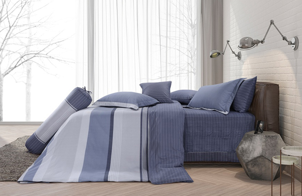 - Đặc điểm: Bộ chăn ga sử dụng tone màu xanh dương đậm cùng với sự đan xen của các họa tiết hình khối đa dạng được in khéo léo thể hiện cho sự năng động, sáng tạo, mới mẻ.