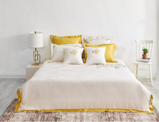 - Đặc điểm: Bộ chăn ga màu vàng nhạt tạo cảm giác ấm cúng, dễ chịu kết hợp với họa tiết xinh xắn giúp cho không gian phòng ngủ trông dễ chịu hơn cho bạn có được giấc ngủ ngon.