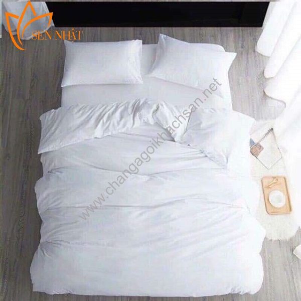 Ảnh: Bộ chăn ga gối đệm Khách sạn trắng trơn T300