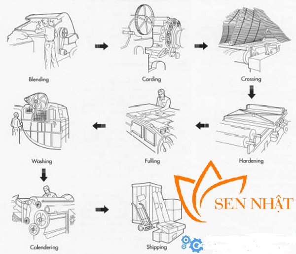 Quy trình sản xuất vải nỉ khá phức tạp và bao gồm nhiều công đoạn, mỗi tỷ lệ nguyên liệu khác nhau đảm bảo tính chất khác nhau cho từng sản phẩm. Công đoạn sản xuất cơ bản bao gồm: