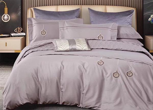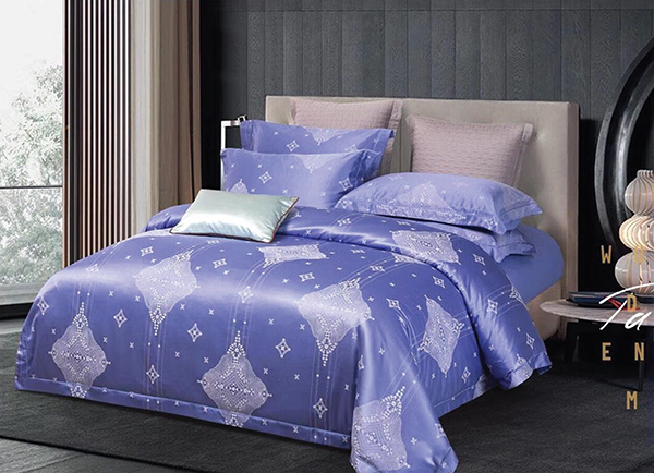Lấy tông màu xanh tím làm chủ đạo, bộ chăn ga này cũng có nhiều nét tương đồng với mẫu trên. Thiết kế sản phẩm hướng đến sự trang nhã, sang trọng. Dù vậy, các họa tiết mang phong cách cổ điển to bản được sắp xếp đan xen trên bề mặt chăn ga tạo cảm giác kịch tính hơn. Đó cũng chính là chi tiết giúp các nhà thiết kế cân bằng được giữa sự thanh lịch lẫn vương giả của bộ chăn ga này.