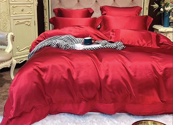 Một sự lựa chọn không thể tuyệt vời hơn dành cho các cặp vợ chồng yêu thích sự tối giản. Hoặc dành cho những ai yêu thích chăn ga đơn sắc nhưng lại lo sợ nó sẽ bị đơn điệu. Dù không sử dụng họa tiết nhưng độ sáng bóng và sắc đỏ đậm vô cùng nổi bật. Trong điều kiện ánh sáng tốt bạn có thể nhìn thấy được các tông màu ở nhiều góc độ khác nhau của bộ sản phẩm, quả là rất thú vị đúng không nào?