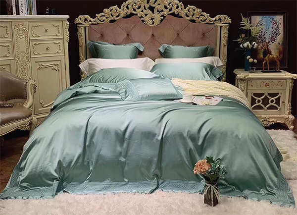 Bạn cảm thấy bộ chăn ga gối kể trên quá rực rỡ? Bạn cần một lựa chọn khác nhẹ nhàng hơn? Vậy thì bộ chăn ga với chất liệu tơ lụa bóng bẩy cùng sắc xanh này sẽ là lựa chọn lý tưởng cho bạn. Để bộ sản phẩm không bị đơn điệu nhà sản xuất cũng đã rất khéo léo trong việc sử dụng viền vải cực tính tế cho nó.