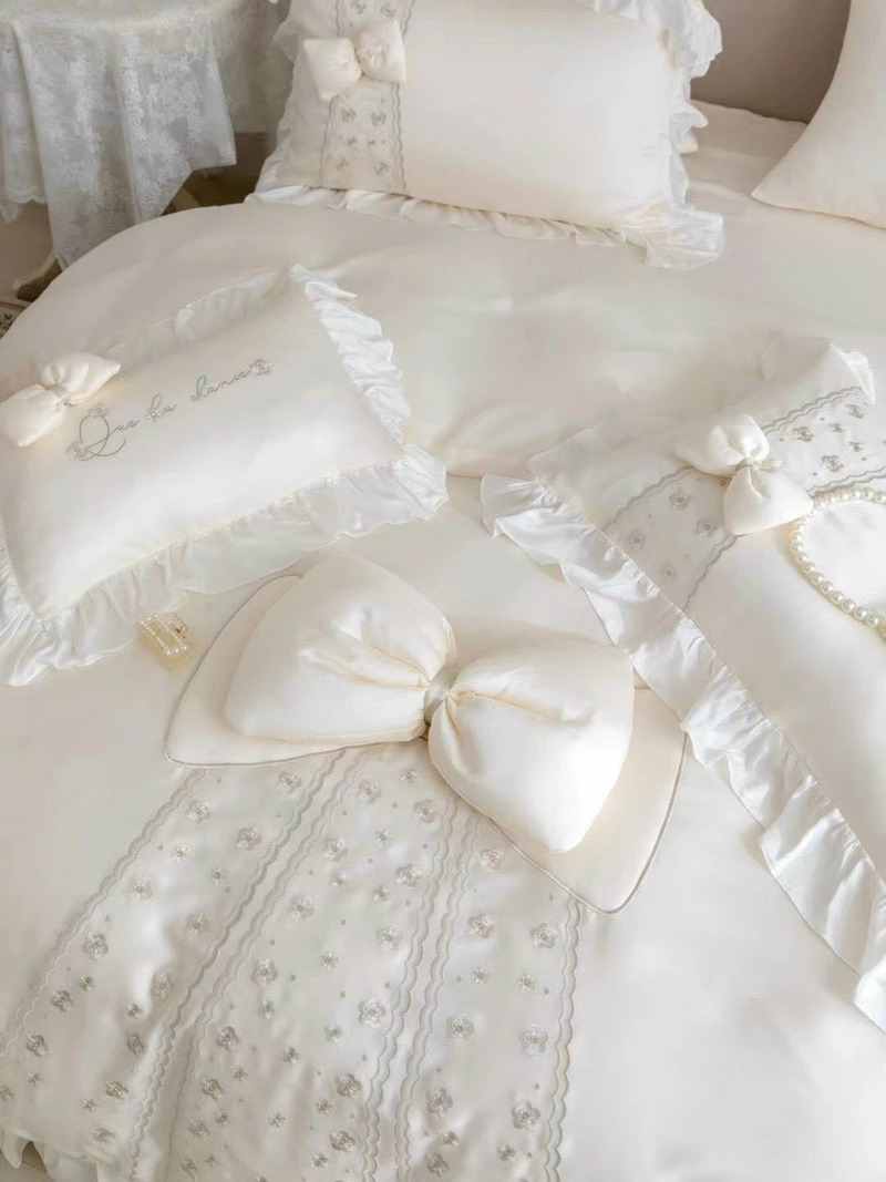 Tone trắng chủ đạo, điểm nhấn là đường viền thêu tinh tế. Sản phẩm chuẩn khách sạn 3–5 sao, thích hợp cho không gian chuyên nghiệp và sang trọng.