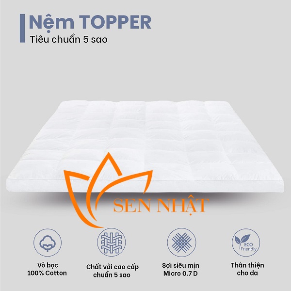 Tấm topper đệm là một tấm đệm nhỏ được dùng để làm mềm đệm hoặc tăng độ cứng cho đệm. Tấm topper đệm đem lại “sức sống mới” cho những tấm đệm cũ kỹ và xẹp lún. Vì vậy, dễ thấy tại sao những tấm topper đệm lại đắt hơn tấm bảo vệ đệm, thậm chí bạn sẽ thấy nhiều sản phẩm trên thị trường sang trọng hơn đệm full size.