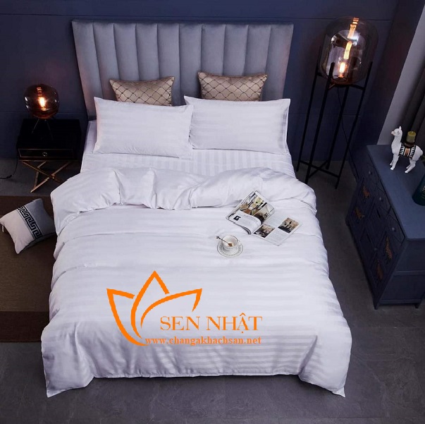 Ảnh: Bộ ga giường khách sạn cao cấp T300 trắng kẻ sọc