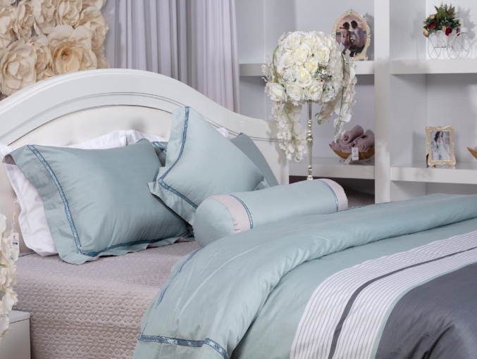 - Đặc điểm: Nổi bật của sản phẩm là sự kết hợp giữa 2 tông màu trắng và xanh ngọc, một xu hướng màu hiện đại, trẻ trung rất được nhiều bạn trẻ ưa chuộng, các họa tiết hoa thêu giúp tô điểm thêm cho bộ chăn ga gối thêm phần sinh động hơn, phù hợp với không gian phòng ngủ nhà bạn.