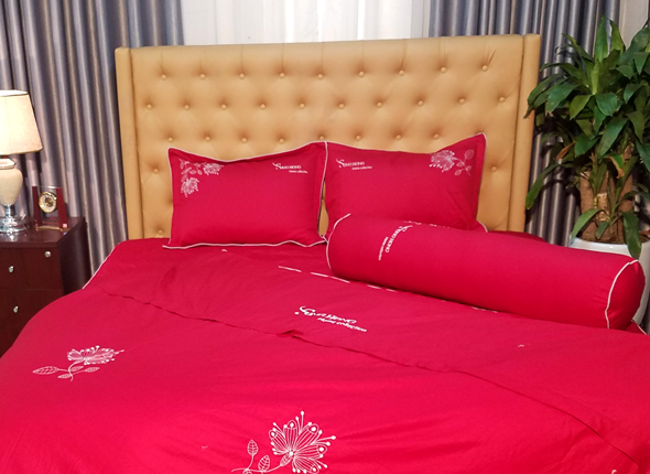 - Đặc điểm: Với tông màu đỏ làm chủ đạo kết hợp với những họa tiết thêu in chìm giúp làm không gian phòng ngủ của bạn thêm sáng hơn, rất hiện đại và phù hợp với sở thích của các bạn trẻ.