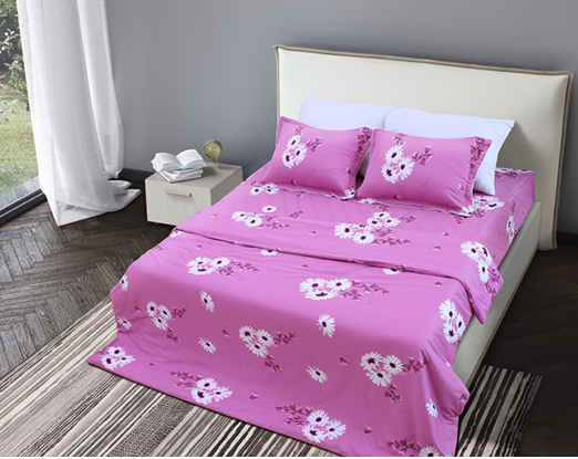 - Đặc điểm: Chăn ga gối với tông màu hồng tím bắt mắt nổi bật lên là những bông hoa cúc màu trắng nhẹ nhàng, tươi mới cho một không gian phòng ngủ thật nổi bật.