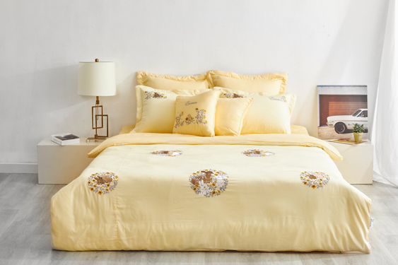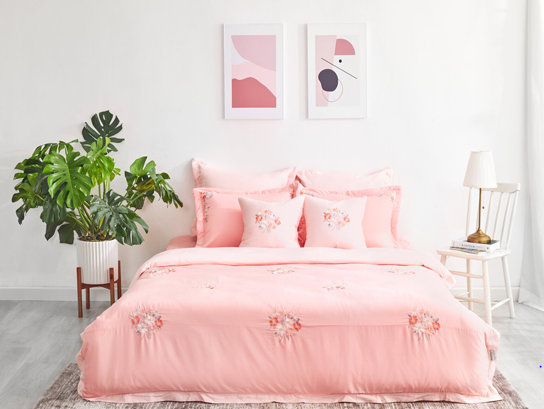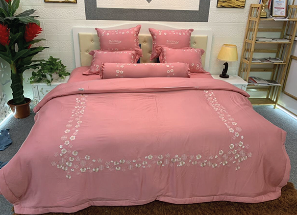 - Đặc điểm: Bộ chăn ga rất sáng tạo khi dùng hình ảnh những chùm cúc dại thêu tỉ mỉ trên nền vải hồng cam – một màu sắc vô cùng ngọt ngào, dễ thương, tinh nghịch, lãng mạn, nữ tính và dịu dàng.