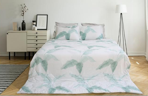 - Đặc điểm: Chăn ga gối thiết kế tông màu nhẹ nhàng, họa tiết lá màu xanh trên nền trắng được kêt hợp tinh tế không gây rối mắt. Màu sắc nhẵ nhặn phù hợp với mọi lứa tuổi, đặc biệt với những gia đình thích sự đơn giản hài hòa trong phong cách phòng ngủ.
