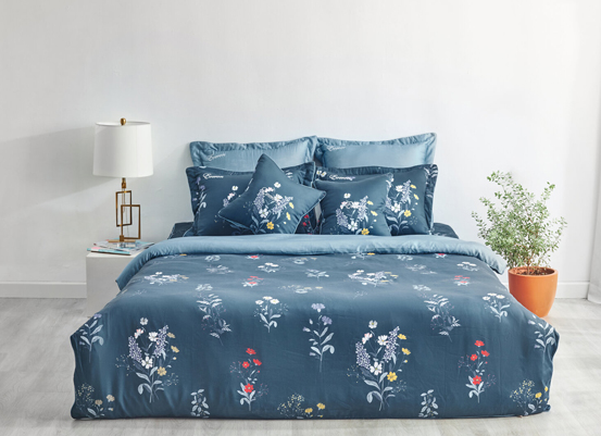 - Đặc điểm: Những cành hoa nhỏ xinh đặt ngẫu hứng trên nền vải tencel màu xanh dương, không sắp đặt cầu kỳ nhưng lại khiến người dùng cảm nhận tốt nhất sự mềm mịn bay bổng của dòng vải thiên nhiên này đem lại.