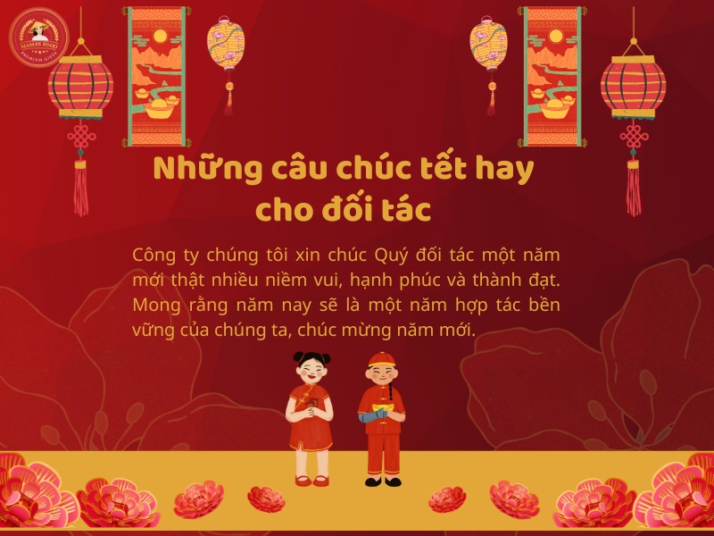 - Chúc Quý đối tác năm mới “Khai xuân phú quý”, “Kinh doanh phát tài”. Hy vọng năm Bính Ngọ sẽ mang đến những cơ hội mới, giúp Quý công ty vươn xa và khẳng định vị thế vững chắc trên thị trường.
