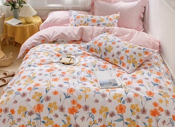 Sử dụng bộ chăn ga gối 016 trong phong ngủ sẽ mang đến năng lượng tích cực và sự lạc quan, yêu đời nhờ sắc màu cam nhạt của những bông hoa xinh, xăn đáng yêu trên nền vải trắng tinh khôi.