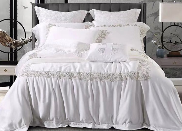 Một bộ chăn ga gối đẹp ấn tượng với tông màu trắng làm chủ đạo kết hợp cùng họa tiết ren độc đáo, đây vốn là những chi tiết hết sức đặc trưng của phong cách vintage và nhà thiết kế đã tận dụng một cách tói đa. Bộ sản phẩm mang đến vẻ đẹp điệu đà, thơ mộng rất thích hợp cho những không gian nội thất kiểu cổ điển.