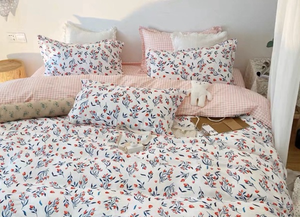 Một vườn hoa ngập tràn màu sắc được thể hiện một cách tinh tế, khéo léo trên bộ chăn ga gối đẹp 011 hứa hẹn sẽ tạo ra một không gian tươi trẻ, năng động.