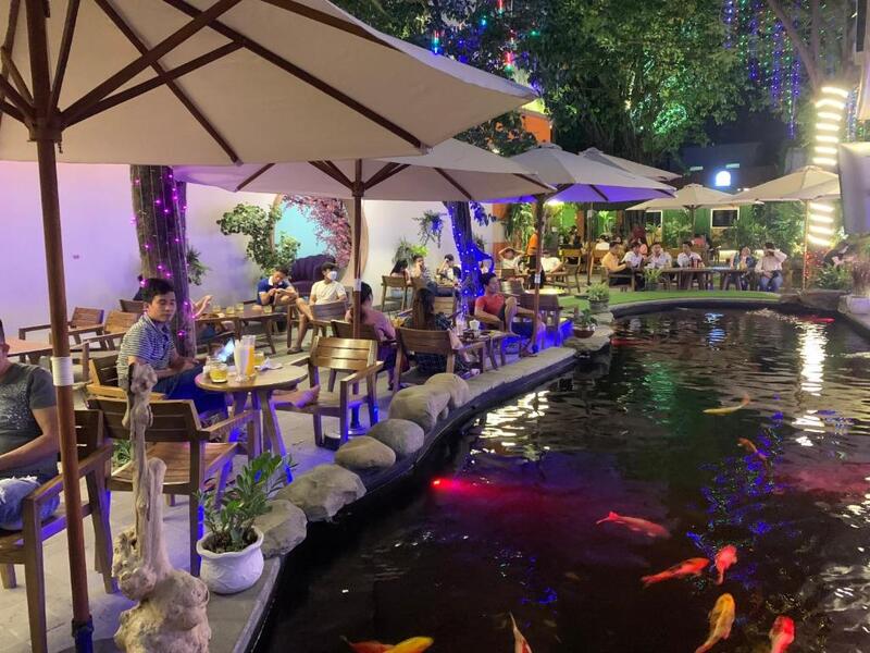 Khách sạn có khu cà phê sân vườn rất thoáng mát