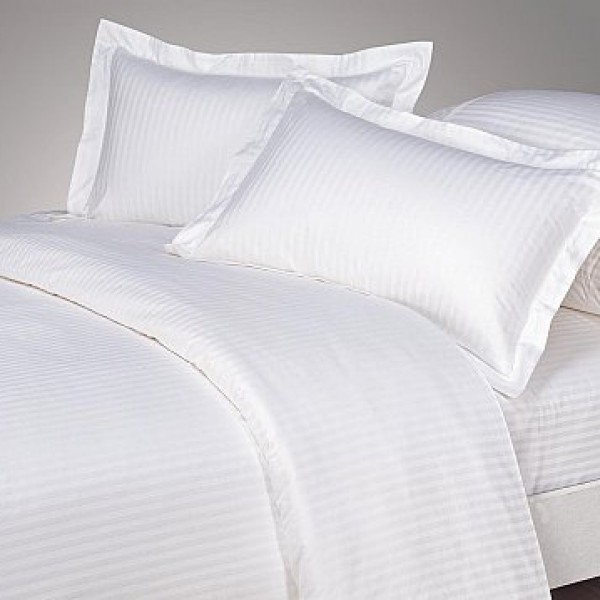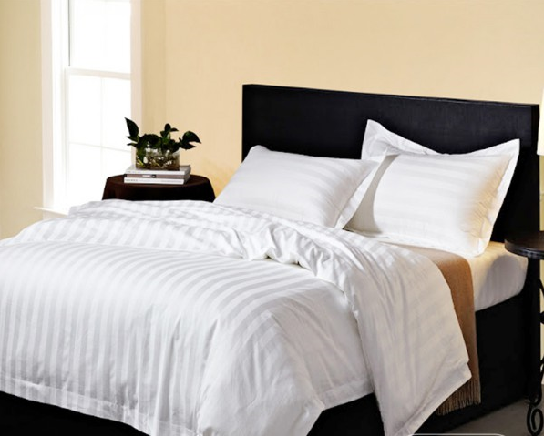Bộ chăn ga gối khách sạn màu trắng kết hợp cùng những đường kẻ sọc đầy sang trọng và hiện đại. Bộ sản phẩm này được may bằng chất liệu cotton và giá bán khá bình dân, qua đó giúp các chủ đầu tư tiết kiệm được khá nhiều chi phí cho mình.